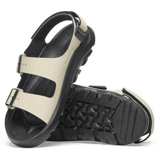 The Mogami Terra sandal takes the outdoor collection even further. Feel comfortable to explore on a waterproof contoured footbed with added toe protection. Featuring a rugged PU sole directly attached to the footbed, this trail-ready style is designed to last, with greater durability, flexibility and all-terrain grip. In Birko-Flor® that's as smooth as it is easy to clean. Go off the beaten path.